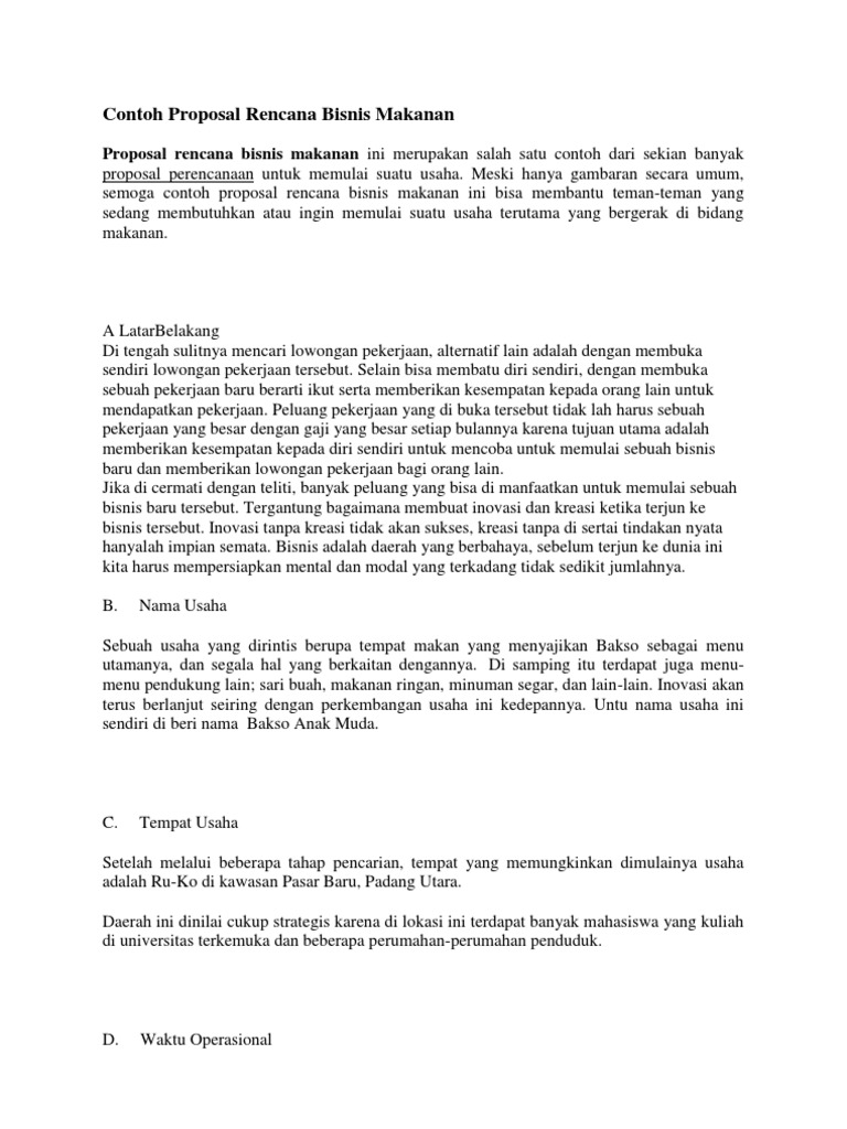 Dalam beberapa tahun terakhir, banyak sekali mahasiswa yang terjun ke. Silahkan download contoh proposal lengkap berbagai jenis kebutuhan, seperti proposal penelitian, proposal usaha, proposal kegiatan, dll. Meningkatkan kualitas makanan tradisional 3. Contoh proposal usaha makanan terbaru. Contoh proposal usaha makanan a.